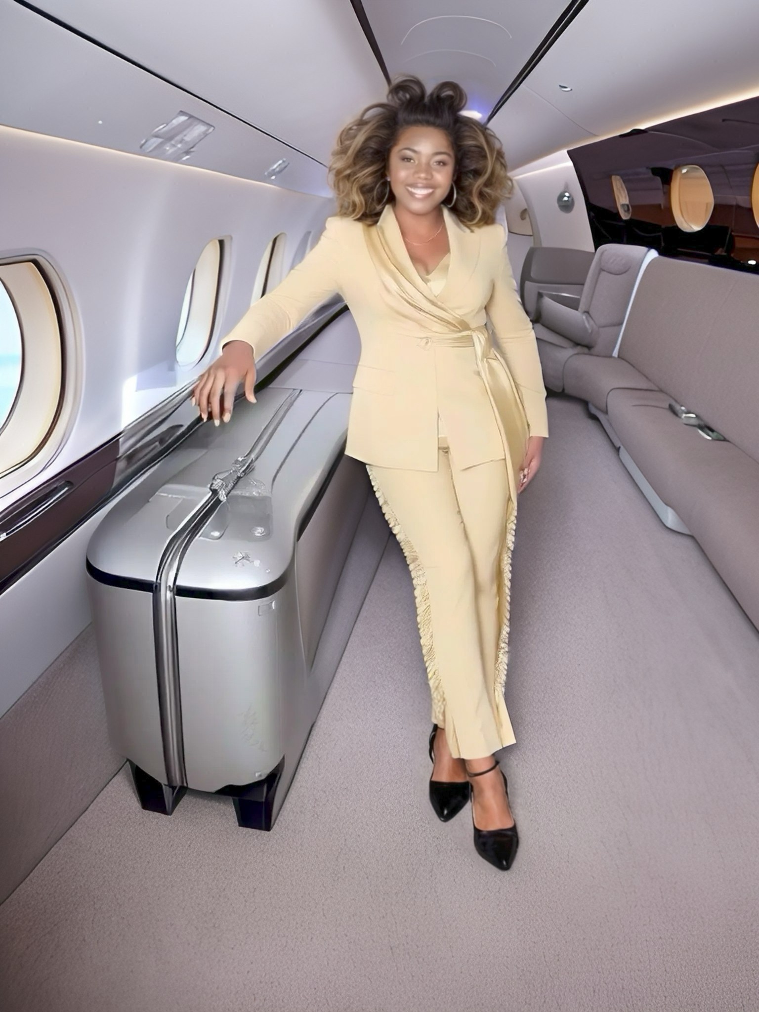 Receive a polished, ready-to-post image plus outfit specs (colors, fabrics, accessories).